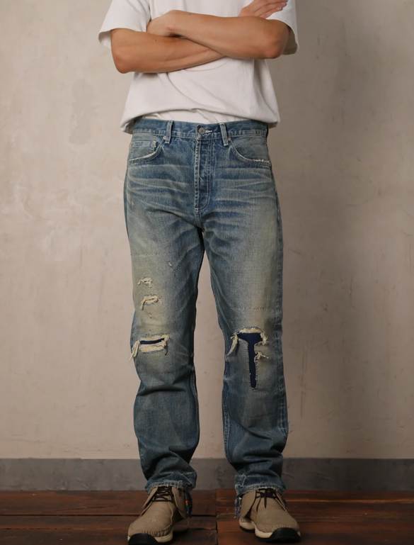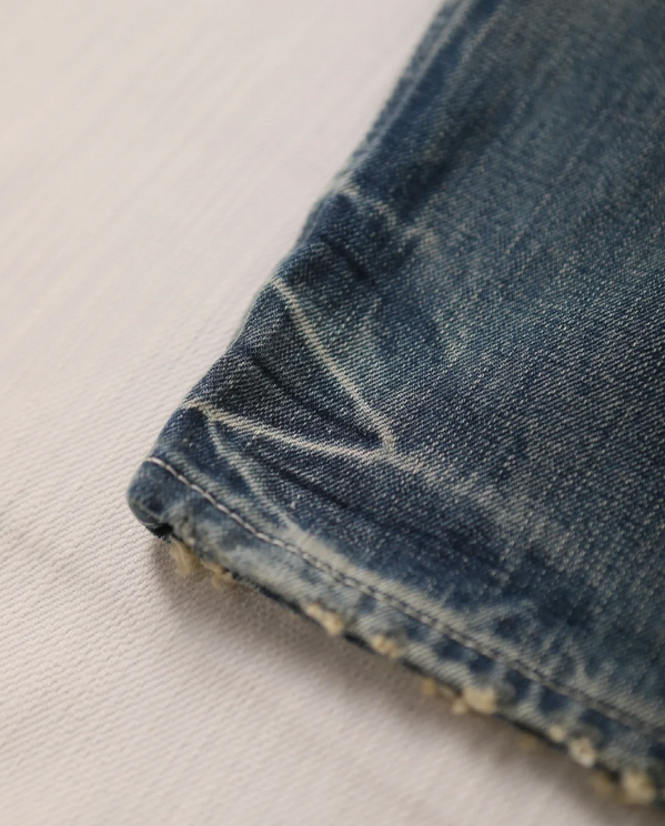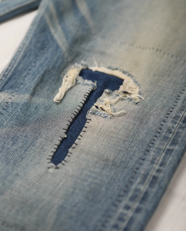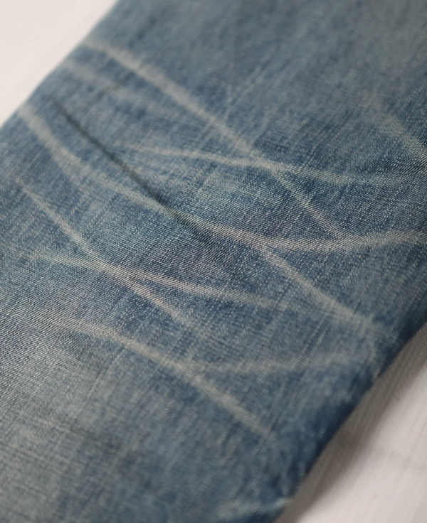 Slim on the outside, resilient at its core. This shade of blue is sharp and clean. Within the structure of these tapered jeans, we capture the simplicity of Zhongzhi denim and the steadfastness of millet-stitch quilting. The T-shaped patch serves as a quiet signature, while the tailored fit allows both body and spirit room to move with ease.